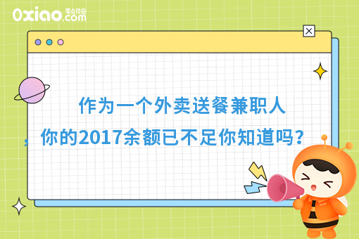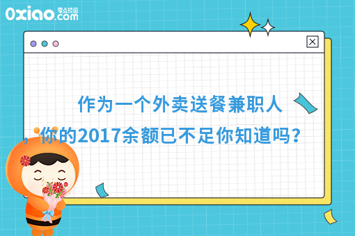 脱单了吗?攒了多少存款?回家的票抢到了吗?年终总结写完了吗?到期的积分兑换了吗?2017的年假你休完了吗?想**的你甩了多少体重了?努力工作的你涨了多少工资了?还记得年初定下的目标和计划吗?2017你付出了多少,又得到了多少?作为一个外卖送餐兼职人,你的2017余额已不足你知道吗?