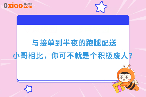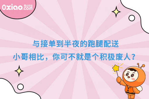 flag要立,但既立之就要扶稳,只要接到订单,不管风里雨里,都要把顾客需要的东西及时送达!跑腿行业目前比较兴盛、门槛低、收入比较可观,一个勤快的跑腿小哥在二三线城市至少都能月入几千到上万不等。压力山大的年轻人偶尔自嘲一下并没有什么,但自嘲后就要戒掉自己的懒惰,行动起来,不做”积极废人“!