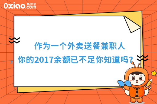 脱单了吗?攒了多少存款?回家的票抢到了吗?年终总结写完了吗?到期的积分兑换了吗?2017的年假你休完了吗?想**的你甩了多少体重了?努力工作的你涨了多少工资了?还记得年初定下的目标和计划吗?2017你付出了多少,又得到了多少?作为一个外卖送餐兼职人,你的2017余额已不足你知道吗?