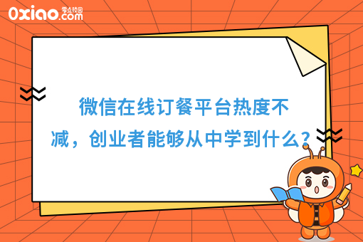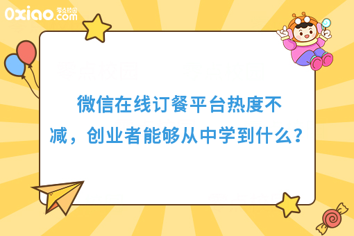 外卖平台在这几年发展迅速,在二三线城市和大学校园市场中,用微信进行在线订餐俨然成为外卖行业的发展新趋势,微信有9亿的用户基础,这是微信外卖能快速发展的原因之一。创业这个事看的都是机遇,抓住了时机才能事半功倍,现如今外卖市场机会多多,你准备好了吗?