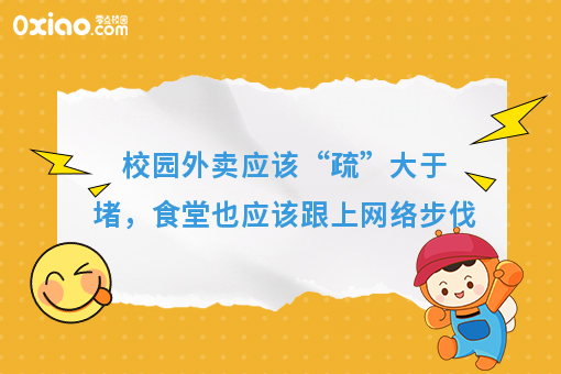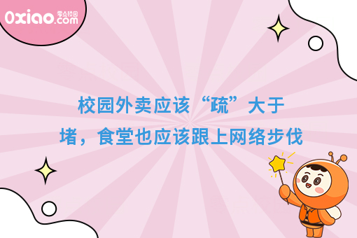 在大学生人人都有手机的当下,另有“互联网+”,“外卖”像春风,吹遍神州大地。校方管理者应学会“放风筝”,疏”大于堵,食堂也应该跟上网络步伐,学会顺应市场的潮流,所谓“放风筝”,一方面,“要让风筝飞上天”,也即允许“有多样性”,允许餐饮外卖进高校,欢迎平等竞争,以方便同学们就餐。