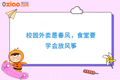 在大学生人人都有手机的当下,另有“互联网+”,“外卖”像春风,吹遍神州大地。校方管理者应学会“放风筝”,疏”大于堵,食堂也应该跟上网络步伐,学会顺应市场的潮流,所谓“放风筝”,一方面,“要让风筝飞上天”,也即允许“有多样性”,允许餐饮外卖进高校,欢迎平等竞争,以方便同学们就餐。