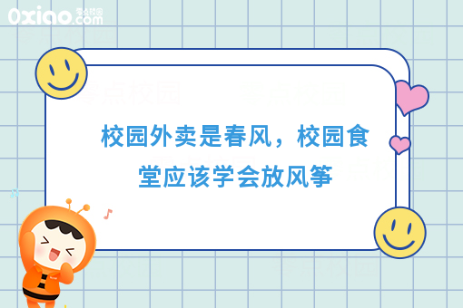 在大学生人人都有手机的当下,另有“互联网+”,“外卖”像春风,吹遍神州大地。校方管理者应学会“放风筝”,疏”大于堵,食堂也应该跟上网络步伐,学会顺应市场的潮流,所谓“放风筝”,一方面,“要让风筝飞上天”,也即允许“有多样性”,允许餐饮外卖进高校,欢迎平等竞争,以方便同学们就餐。